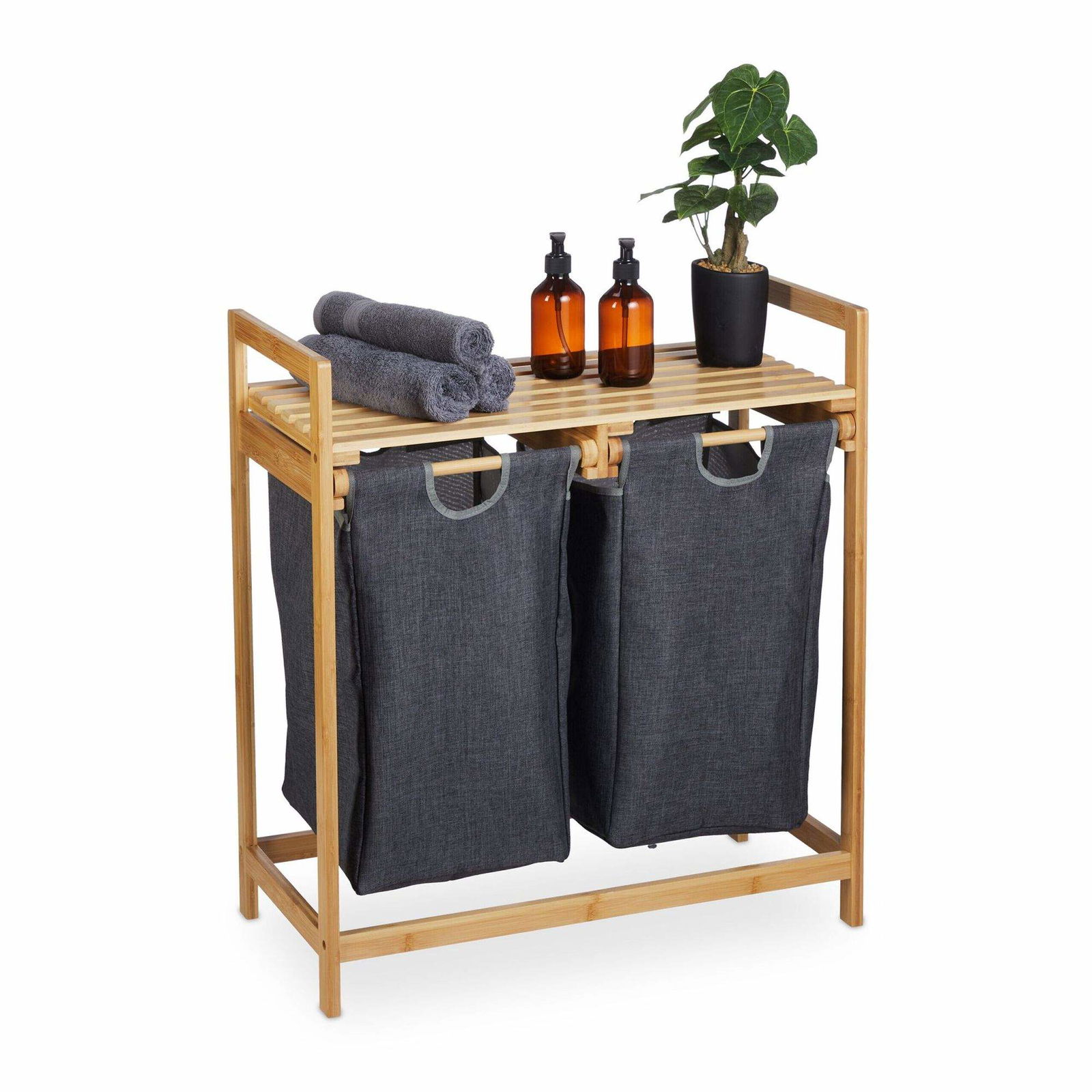 Vasketøjskurvhylde med 2 rum