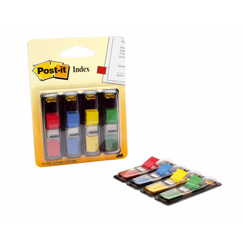 Indeksfaner, Post-it, lille, 4 assorterede farver, 4 blokke a 35 ark