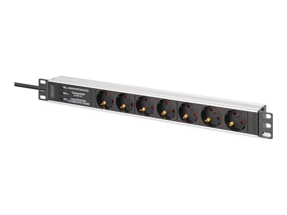 DIGITUS - Stikdåse (rackversion) - aluminiumprofil, med overspændingsbeskyttelse, integreret netfilt - AC 230 V - input: power CEE 7/7 - output-stikforbindelser: 7 (DIN 49440) - 1U - 19 - 2 m ledning