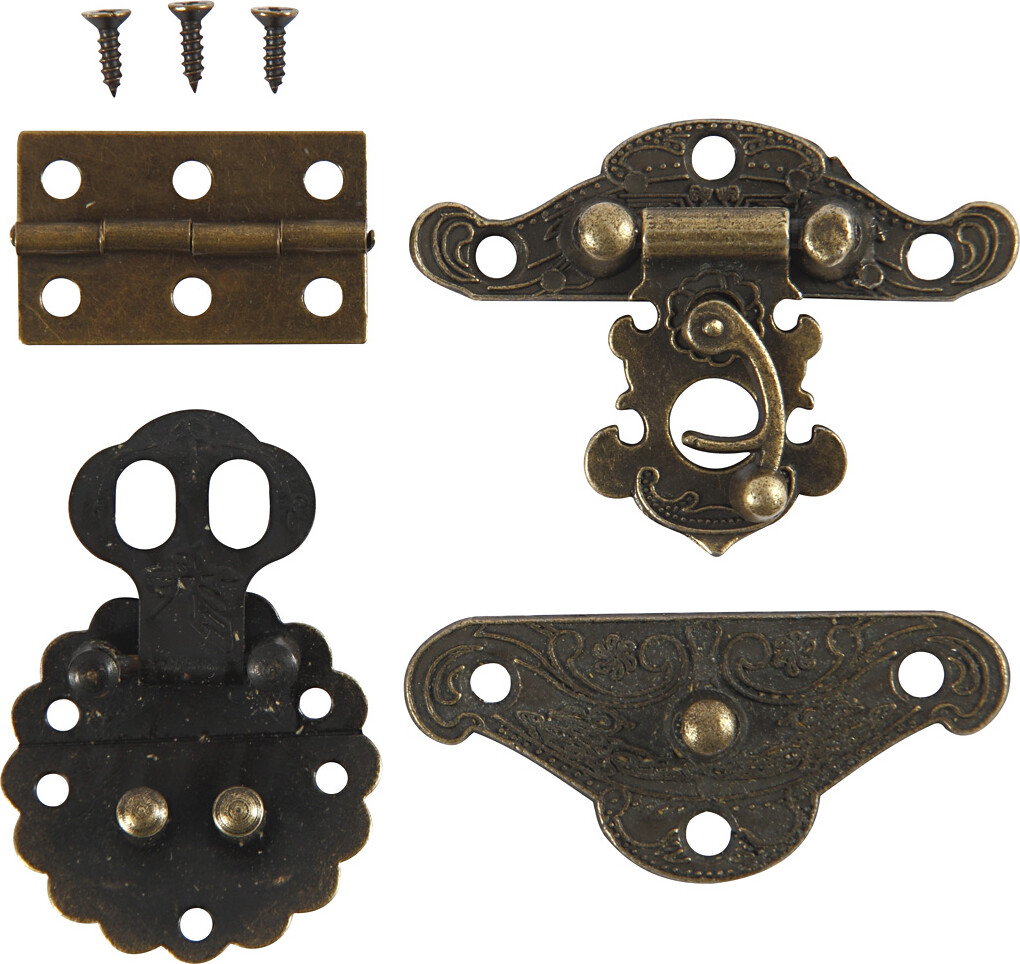 Diverse Minibeslag, str. 30-35 mm, antik guld, 10sæt/ 1 pk.