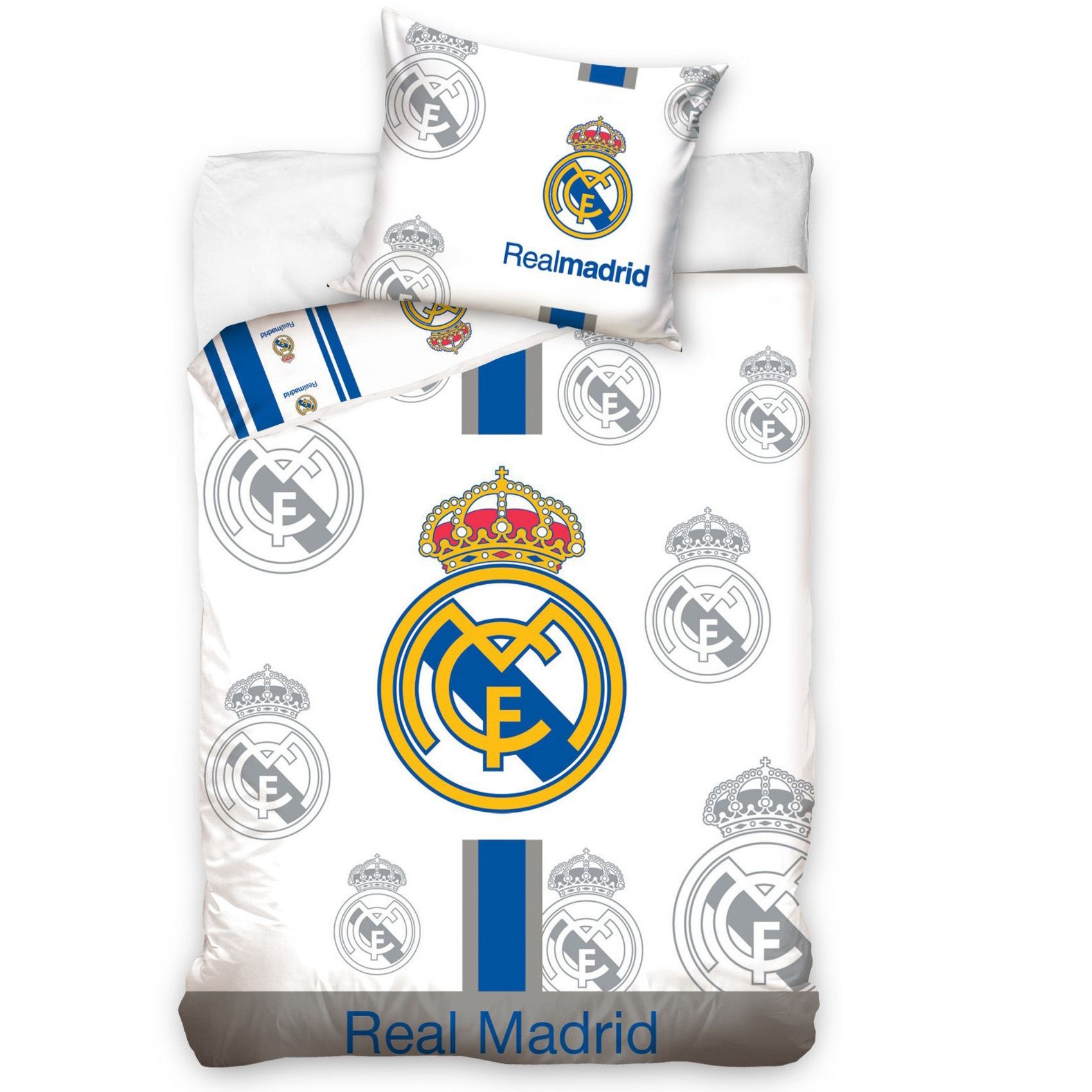 Sammenlign priser på Real Madrid sengetøj - 100% bomuld - Børnesengetøj 140x200 cm - Fodbold sengetøj med logoer og køb billigst