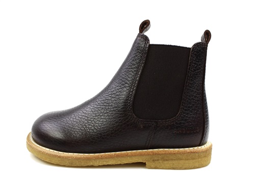 Angulus Chelsea Støvle Mørkebrun Læder Med Rågummisål (Smal) - Str. 27