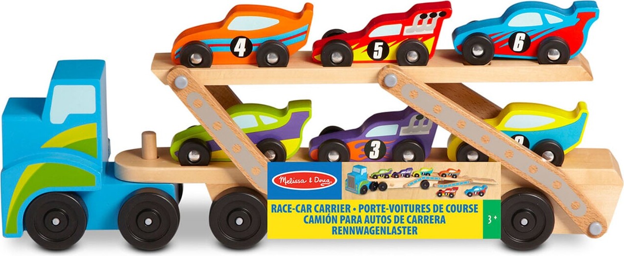 Melissa & Doug Wooden Vehicles Car Carrier Mega Race Car