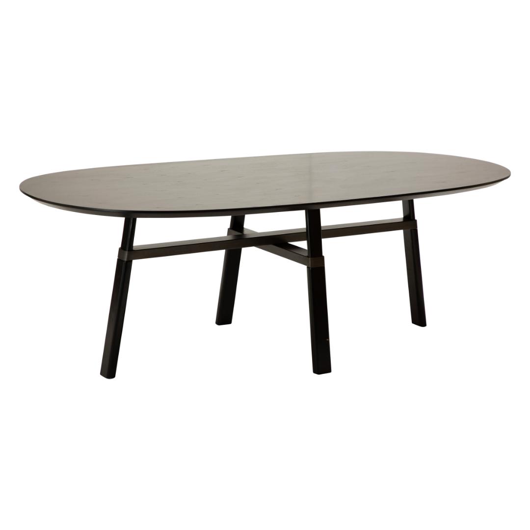CROSS Ovalt spisebord i metal og egetræsfinér 220 x 111,5 cm - Sort/White wash