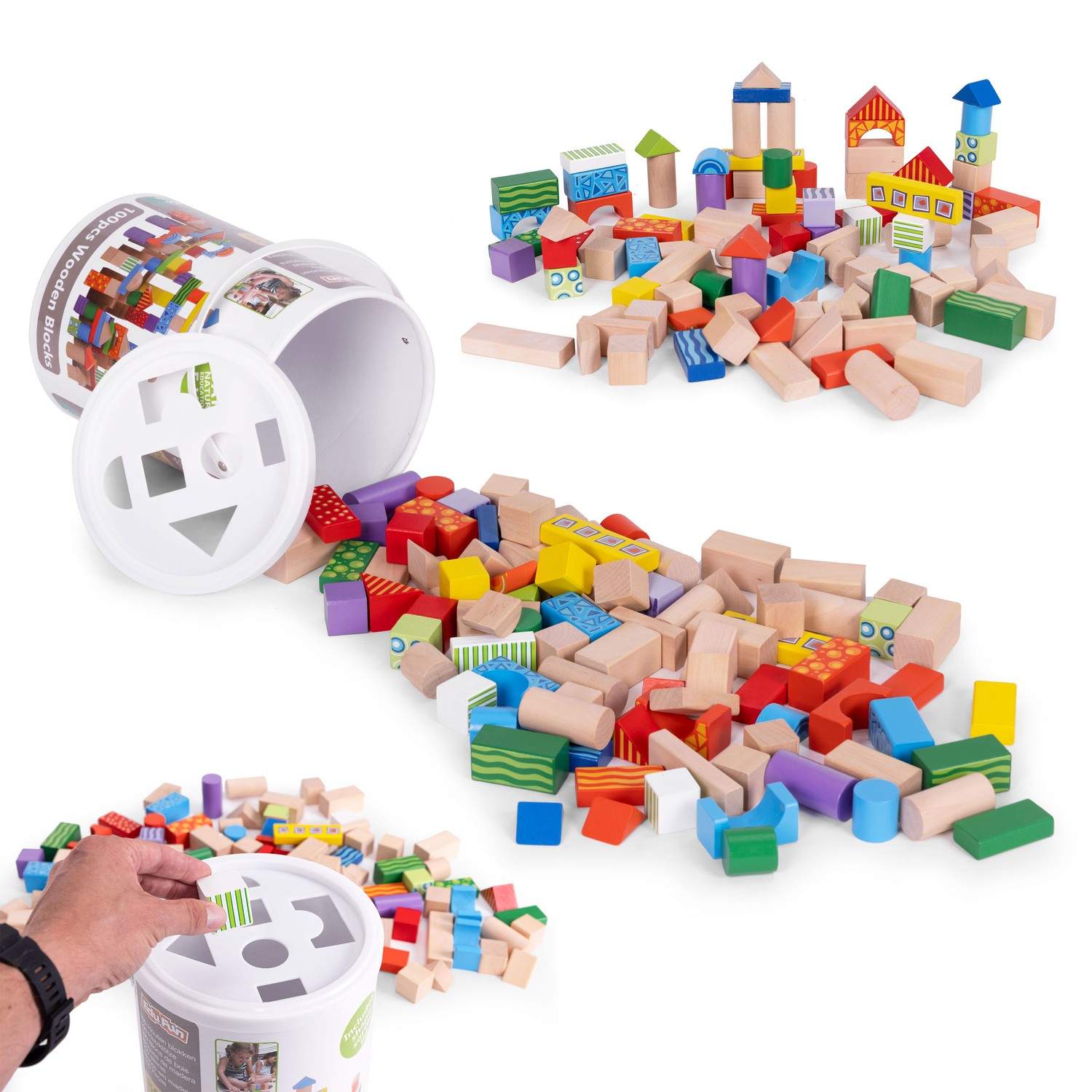 Træblokke 100 stk. spand + sortering Ecotoys