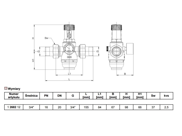Herz membran-trykregulator 3/4 (1268212)