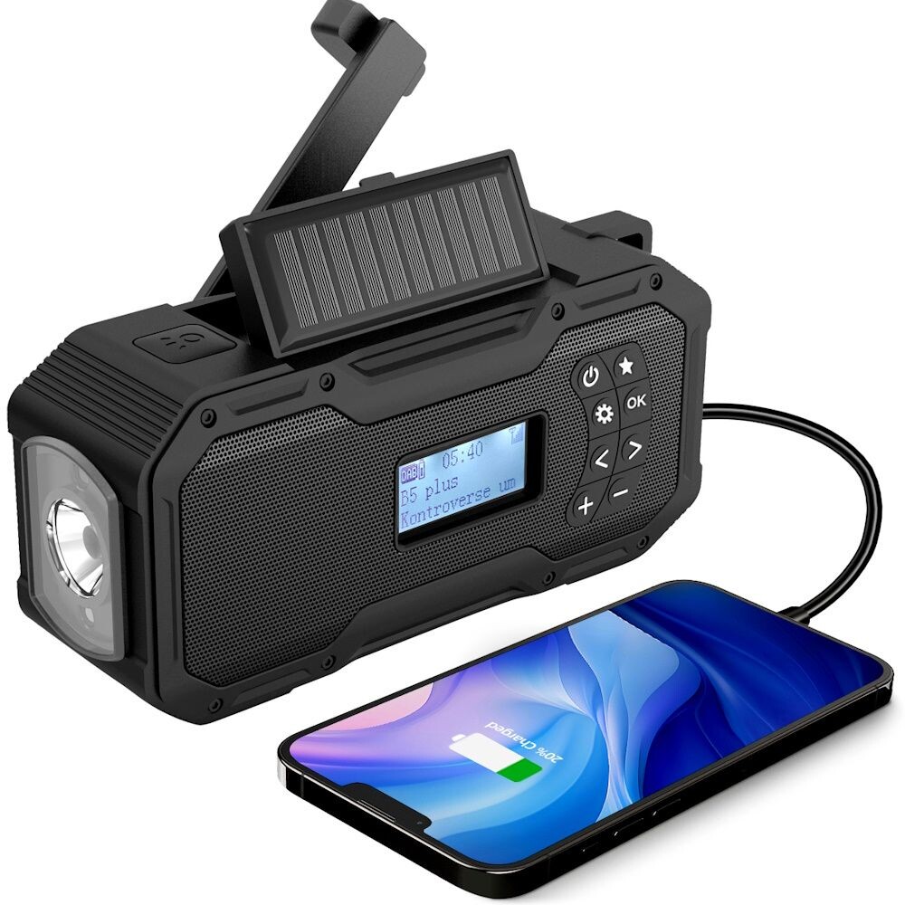 Lakuda Nødradio batteri/håndsving/solceller/USB-C (FM/DAB/Lygte) - Ekstra stort 5000mAh batteri