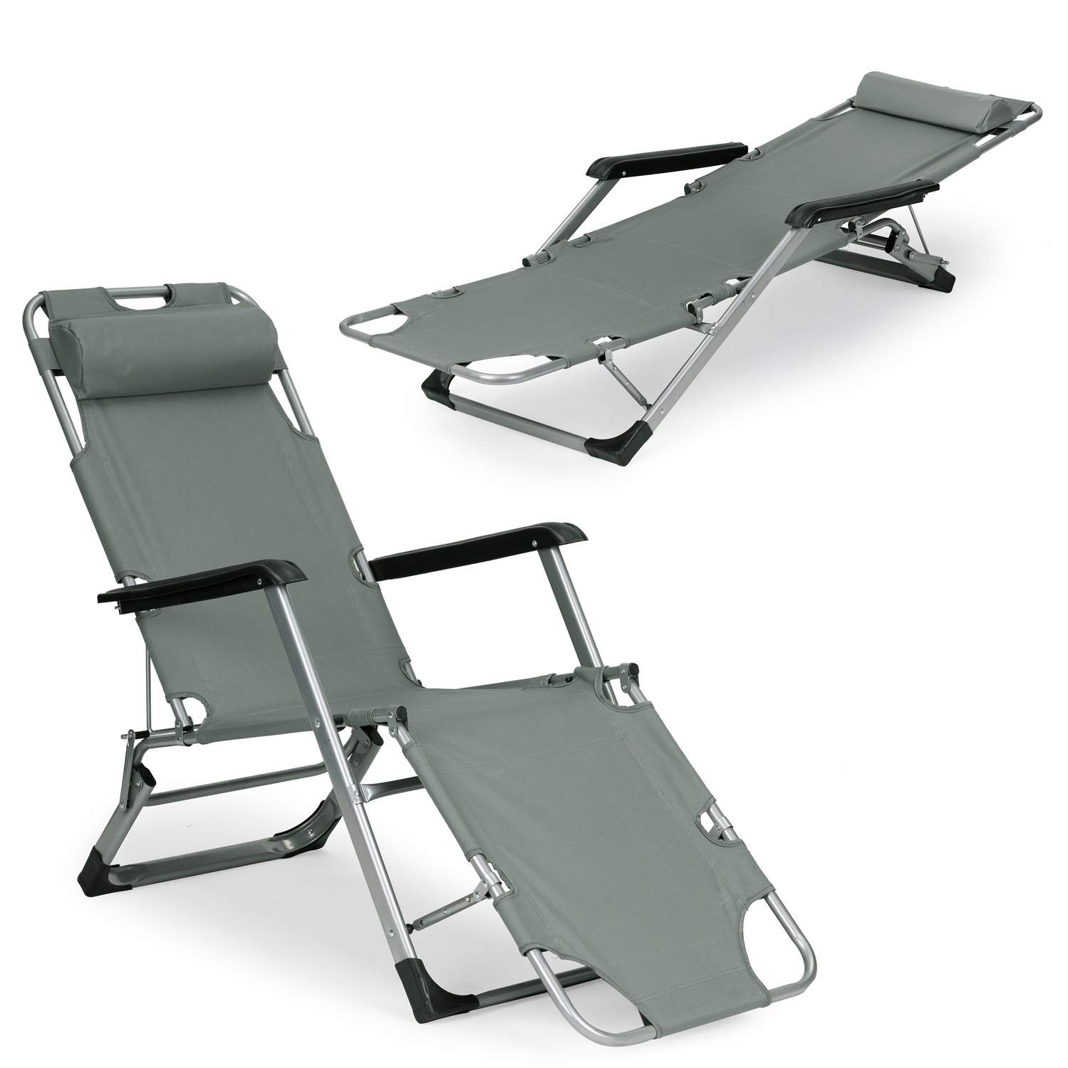 Sammenklappelig strandhaveseng, justerbart ryglæn, stålstel, grå, MultiGarden