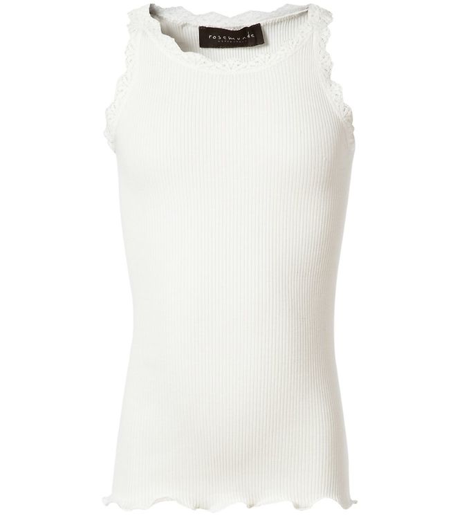Rosemunde Top - Lang - Silke/Bomuld - Hvid m. Blonder