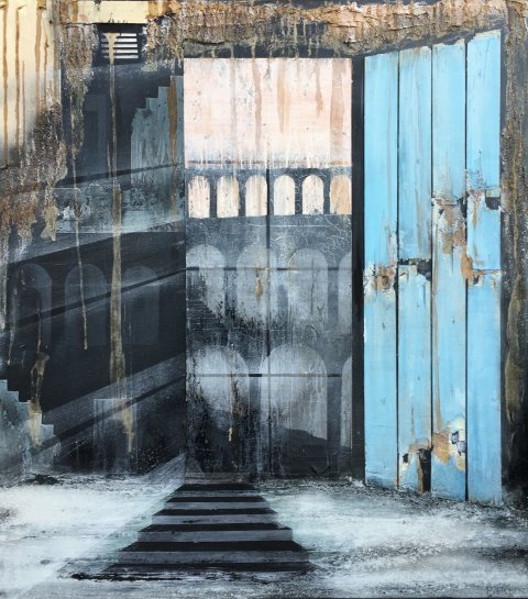 Rosa dag blå væg