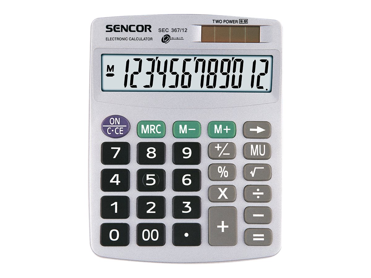 Sencor SEC 367/12 - Skrivebords-regnemaskine - 12 cifre - solpanel, batteri - grå