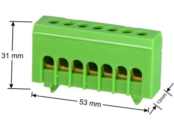 Simet-tilslutningsklemme på TS35 isoleret beskyttende PE 7-polet 7 x 16mm2 grøn 870S-7FS (89821005)