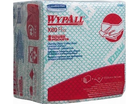 WYPALL 19154 WYPALL* X80 Plus rengøringsklud - 1/4 fold, grøn - 8 poser x 30 stykker, 35 x 34 cm (karton=8 bnd)
